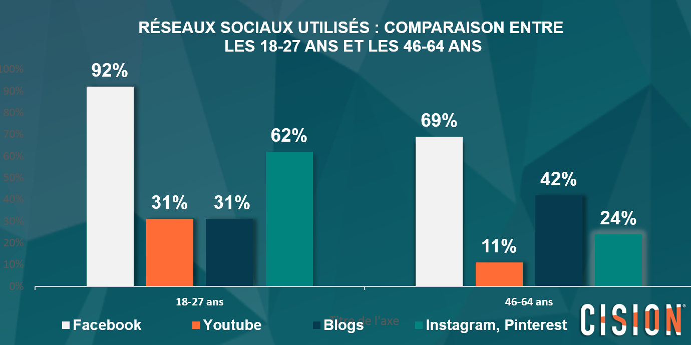 A l’inverse, il est intéressant de noter que les blogs sont moins prisés par les 18-27 ans (31%) que par les 46-64 ans (42%).