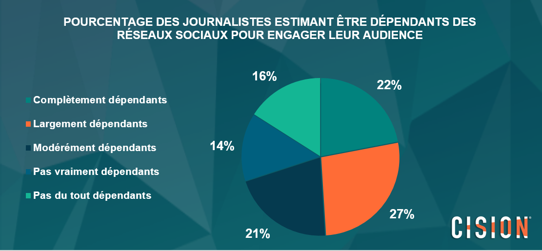 D’ailleurs, les journalistes interrogés se sentent moins dépendants des réseaux sociaux pour engager leur public. En effet, ils ne sont que 22% à estimer être totalement dépendants et 16% à ne pas du tout l’être.